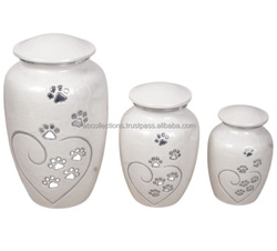 جرة حرق حيوانات أليفة رخامية حديثة فاخرة متعددة الألوان من الألومنيوم ، تصميم كلاسيكي مطبوع على شكل باو لجرارات الحيوانات الأليفة لجنازة الحيوانات الأليفة